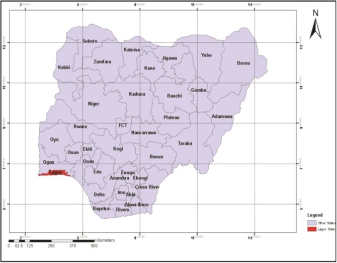 Map of Nigeria showing Lagos State (Oyinloye et al., 2016)