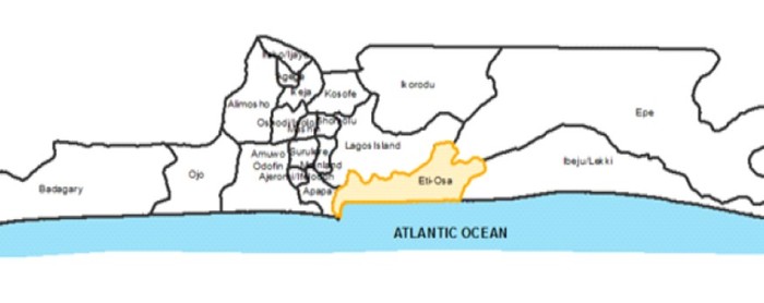 Map of Lagos State, showing Victoria Island in Eti-Osa Local Government Area (Oyinloye et al., 2016)