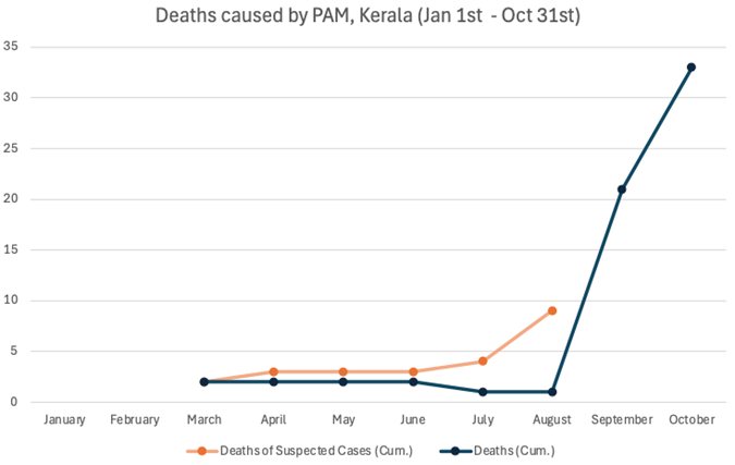 Figure 3: Cumulative Deaths caused by PAM, Kerala (Jan 1st - Oct 31st).