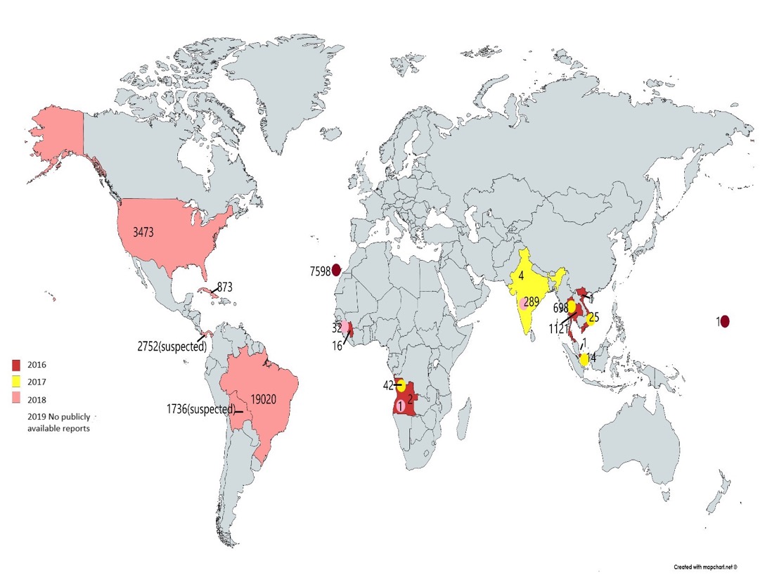 Note: The number of zika cases are mentioned with respect to relevant years.