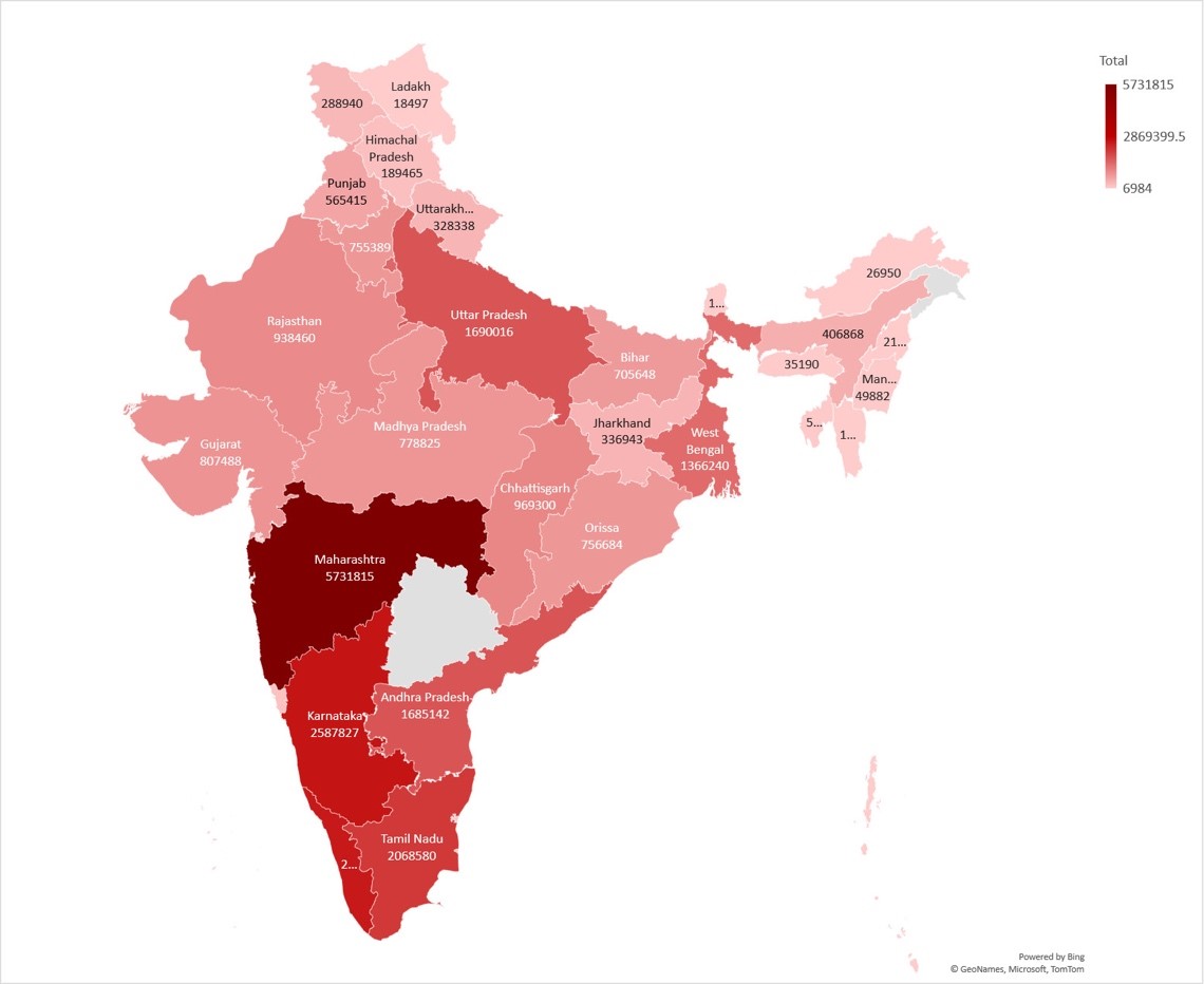 The total number of reported SARS CoV-2 cases by state, 30/01/2020 31/05/2021. Source: Government of India, M., 2021. MoHFW | Home. [online] mohfw.gov.in. Available at: https://www.mohfw.gov.in/ |