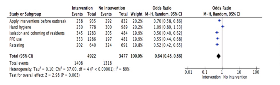 Forest plot of overall interventions used in LTCFs.