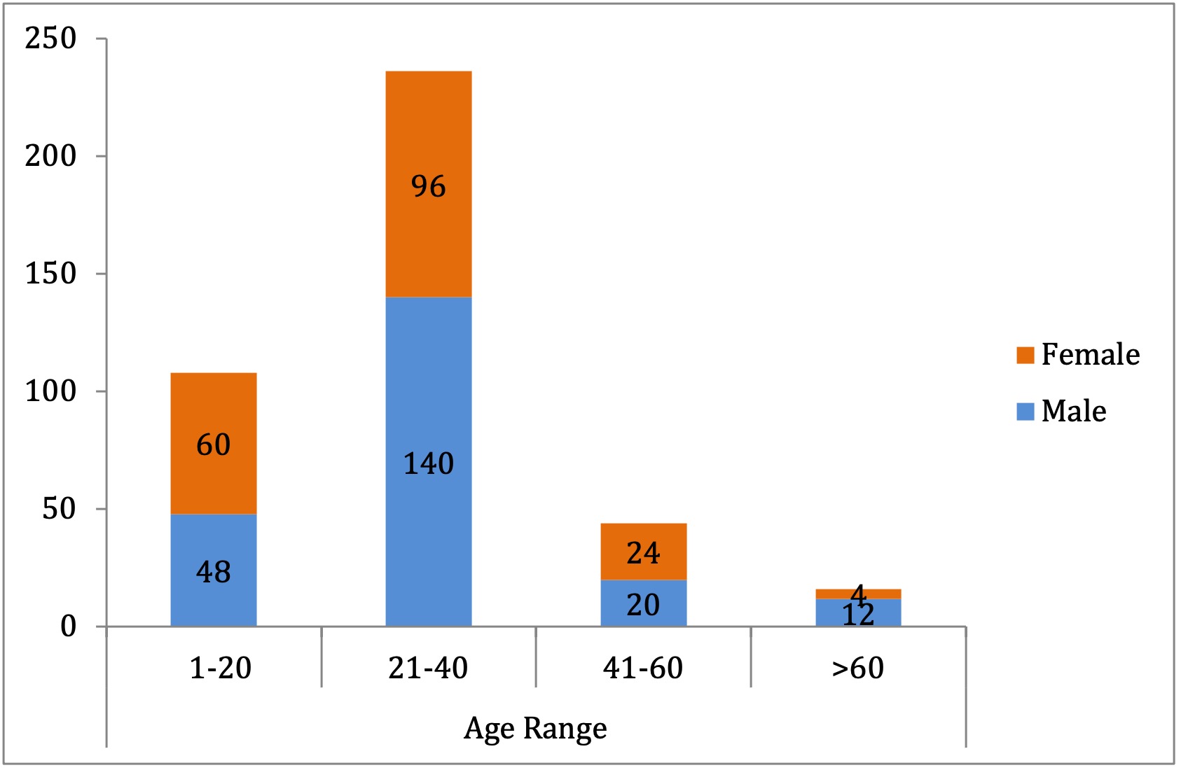 Age and gender-wise distribution of study participants (n=404) from community of Pakistan from 1 June to 31 July 2020