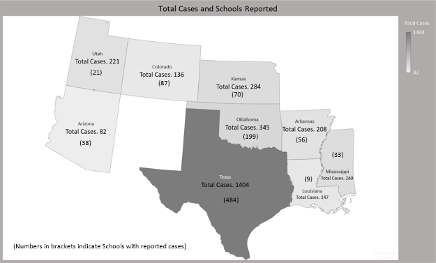 | Case Count | AR | AZ | CO | KS | LA | MS | OK | TX | UT |
