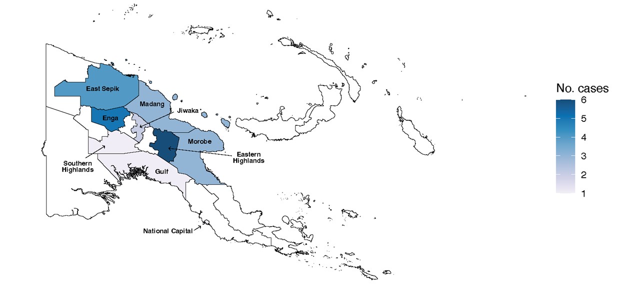 Map data for PNG was sourced from the United Nations Office for the Coordination of Humanitarian Affairs Data Exchange (https://data.humdata.org) [17]. Maps were generated using the ggplot2 package in R version 4.1.1 (R Foundation for Statistical Computing).