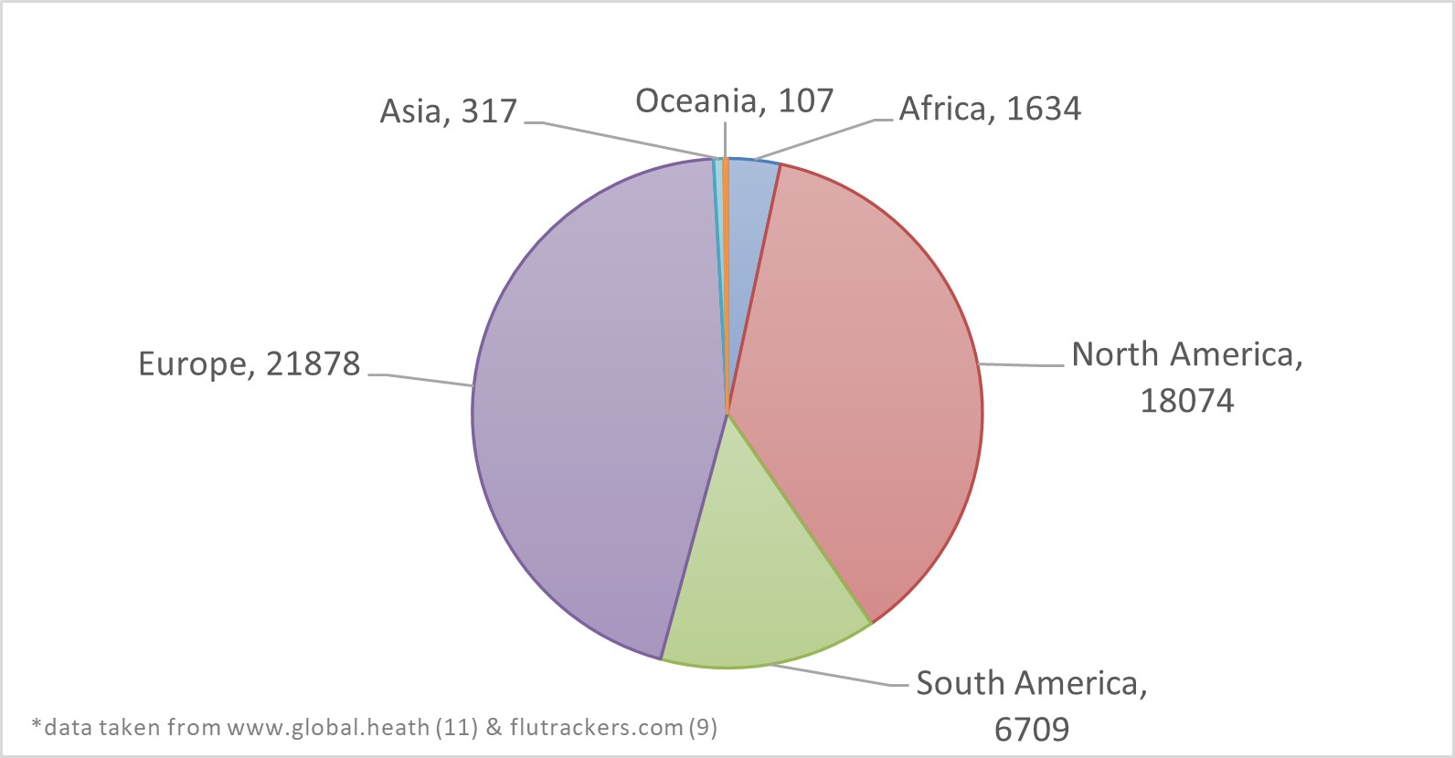 | Affected countries & regions | The current outbreak, in May 2022, has spread to Europe, North America, South America, Asia and Australia with the surge of monkeypox in both endemic and non-endemic areas. The global distribution of confirmed and suspected cases by continent is shown in Figure-1, while Figure-2 is depicting top 10 impacted countries.