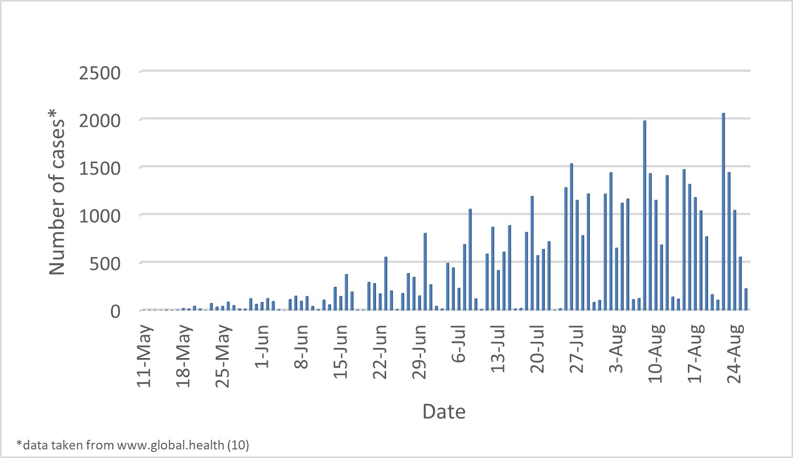| Number of cases (specify at what date if ongoing) | The epidemic has been continuing since 2017 in endemic countries, with 23,428 suspected cases and 589 fatalities reported until May 2022 (11). In 2022 alone, there are 1,599 cases in endemic areas, while in total there have been 47,491 confirmed worldwide cases with nine deaths recorded as of August 27, 2022 (12, 13). The geographic distribution of 2022 outbreak is shown in Figure-3.