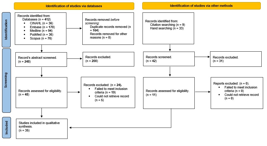 Overall, 35 studies were included, with 24 obtained via systematic searching and 11 through hand/citation searching (Figure 1). Excluded papers failed to pass either our abstract (n=231) or secondary (n=24) screening criteria. For instance, some papers did not include a sample which involved members of the general public. Additionally, others could not be accessed electronically and were therefore excluded (supplementary file 6).