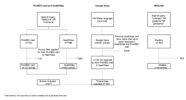 Using the keyword “Malaysia” and “Indonesia”, we conducted a search query in ProMED-mail and HealthMap for entries dated between August 1, 2016 to August 31, 2017. We then compared the entries collected from ProMED-Mail and HealthMap against Google News.