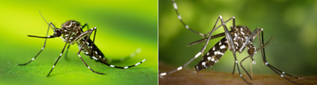 Figure 1: Aedes aegypti (left) and Aedes albopictus (right) mosquitoes (source: CDC) (6)