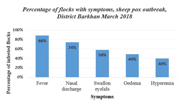 Symptoms among affected flocks during sheep pox outbreak in District Barkhan