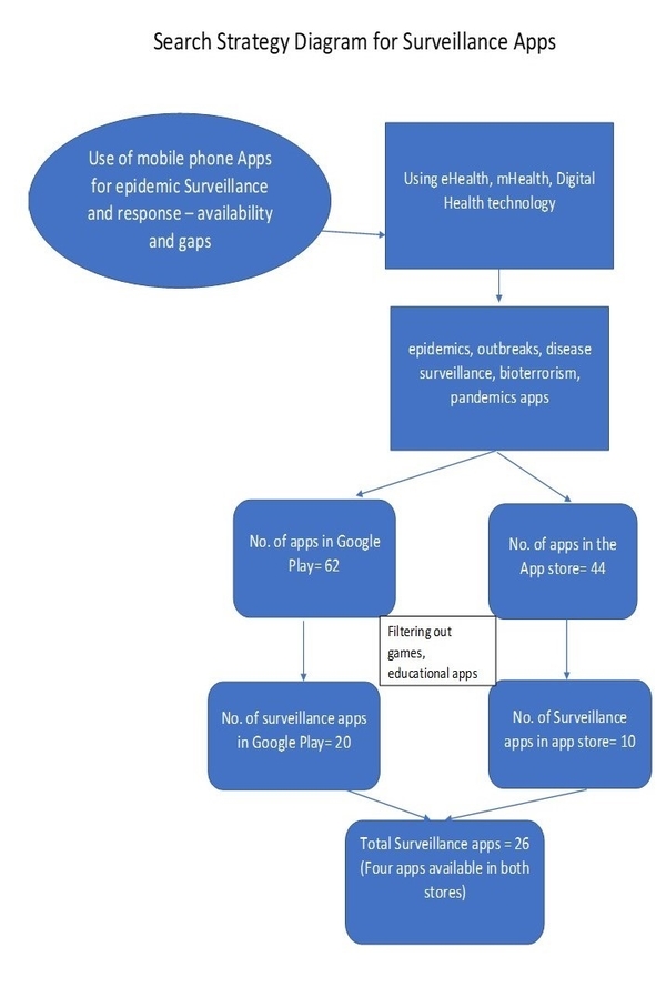 Available Apps were analysed by the intended user, purpose, platform, functions and number of downloads. Apps were reviewed for platform (Android or iOS), relevance, purpose, intended users, cost and the number of downloads. We excluded apps related to games, health education for members of the public, or not relevant for public health. All the surveillance apps were compared based on the following criteria: features available in the App, the types of diseases they track, surveillance regions, sources of disease reports, release and last updated date, device compatibility, languages available, number of downloads, ratings, and price (free or paid). In addition, we identified the underlying models or digital technology used to detect the disease epidemics and compared among the reviewed apps. The Apps found from the review of android and iOS stores were categorized by multiple diseases and single disease surveillance App. Furthermore, the apps were categorized based on user-friendliness of their features.