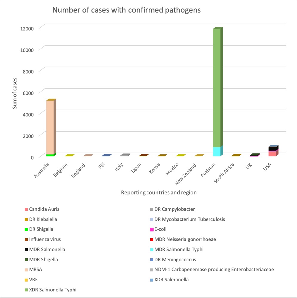 A limitation of this study is that EpiWATCH exclusively relies on English in gathering data. The selection of articles in English introduces reporting bias, and could explain the predominance of reports from the USA. Besides language bias, some reports presented incomplete data, in particular for variables like the age and gender of patients, together with omission of relevant clinical details. Moreover, there is also a potential for inter and intraobserver bias with the investigator conducting data entry, varying over the recording of AMR news events during extraction, filtration and presentation of reports.