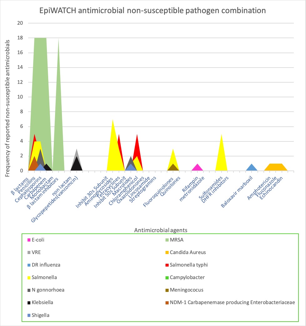 Pattern of pathogen resistance to antimicrobial drugs from EpiWATCH data.