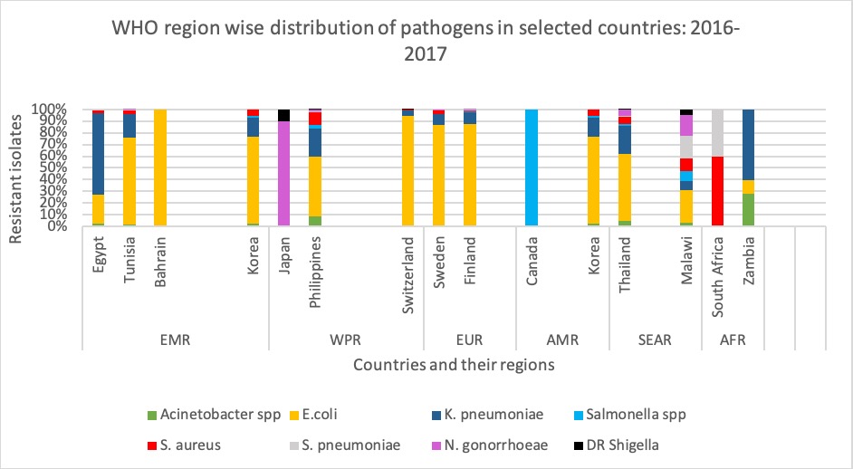 Profile of the region wise distribution of pathogens in selected countries, 2016-2017, WHO