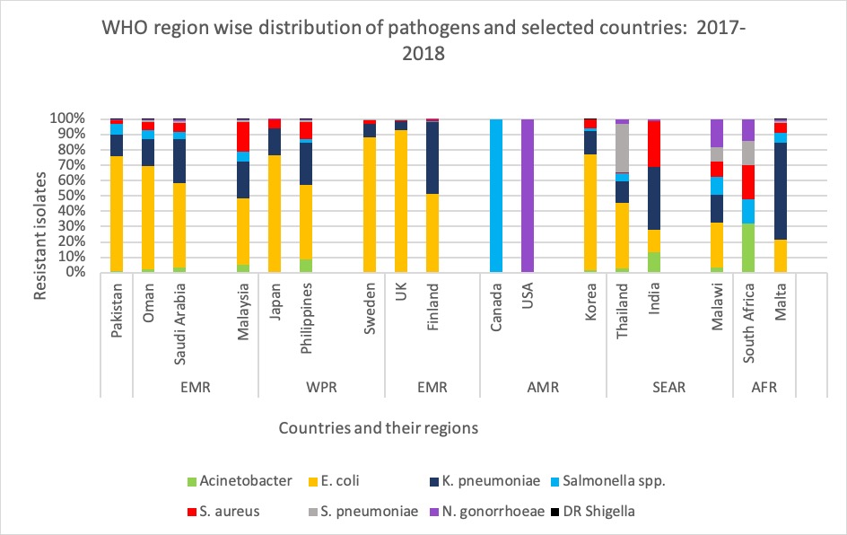 Profile of the region wise distribution of pathogens in selected countries, 2017-2018, WHO