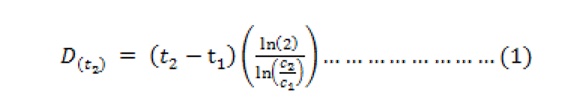 Here, t1 is the first day from when we start our calculation, t2 is the day we want to calculate the doubling time for, c1 is the cumulative number of cases or deaths for t1, and c2 is the cumulative number of cases or deaths for t2. ln(2) is the natural logarithmic value of 2.